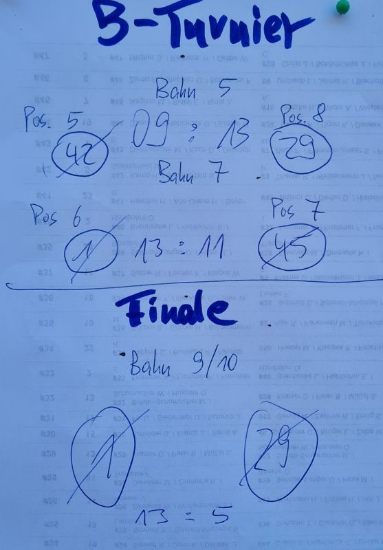 Hier der Spielplan des B-Turniers. Im Finale standen sich die Teams 1 und 19 gegenüber.